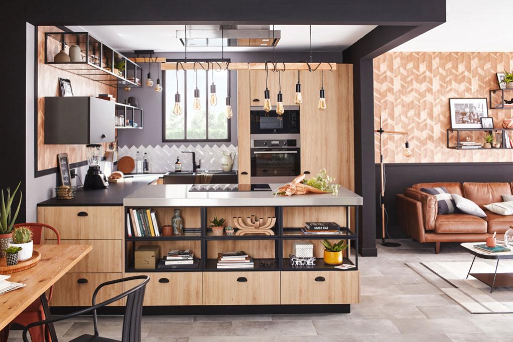 cuisine tokyo imitation chene naturel mat l 180 cm avec meuble haut et bas leroy merlin