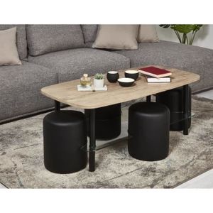 table basse relevable avec poufs saphira couleur chene clair dimensions 80 cm