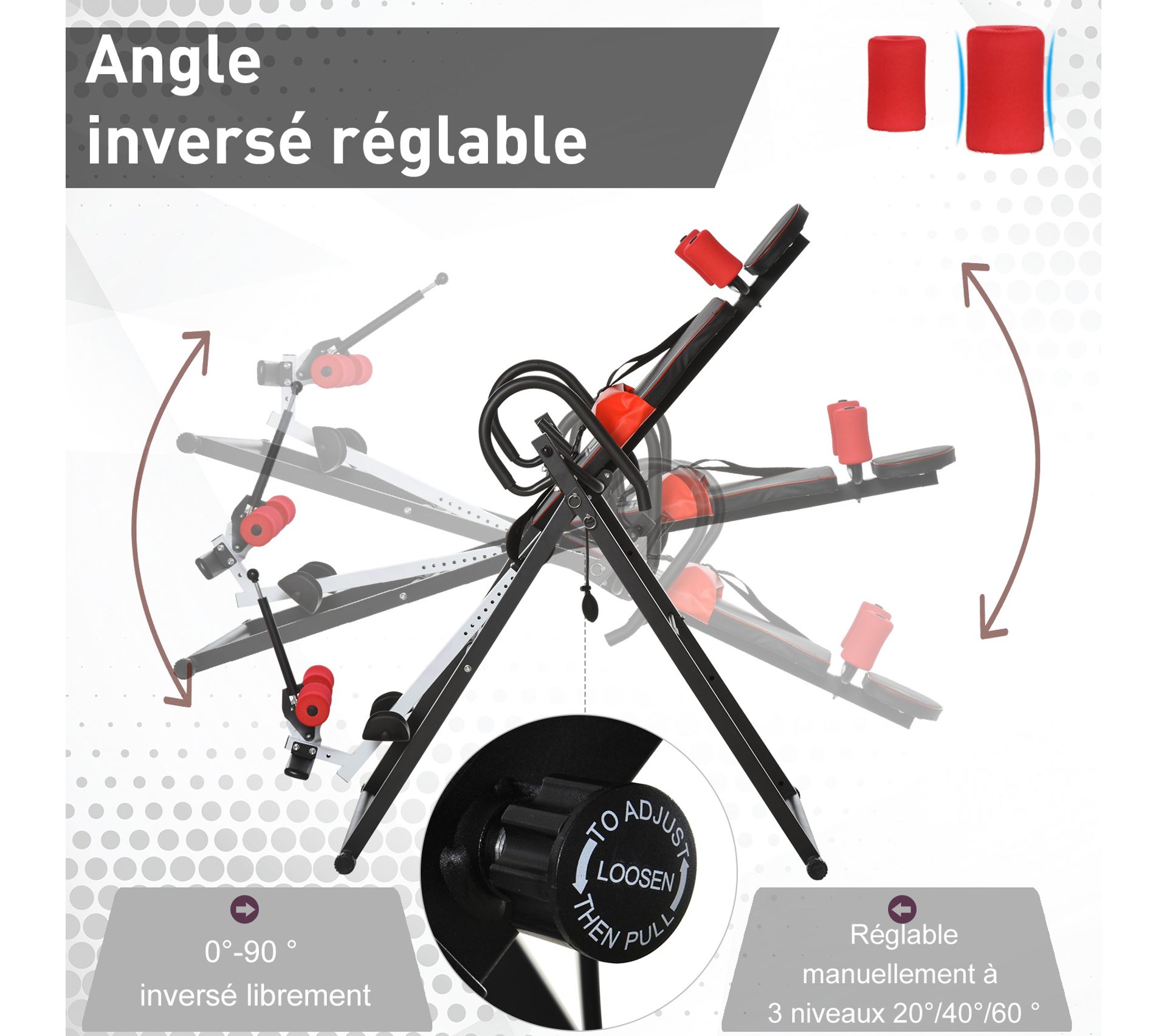 table d inversion de musculation pliable ceinture de securite reglable angle inverse ajustable 3 niveaux acier rouge noir accessoires musculation accessoires de sport bien etre et loisirs gifi