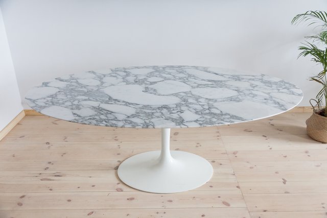 table tulipe eero saarinen knoll occasion superbe table ovale eero saarinen edition knoll annee 2004 plateau en marbre blanc veine gris 1 98 m pied tulipe blanc parfait etat possibilite livraison paris